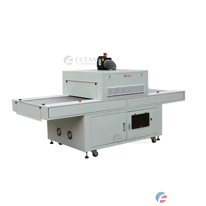 复坦希电子科技生产研发的UVLED流水线移动式隧道炉,采用进口LED灯珠,具有能量高、光照均匀、光源稳定等优势,可根据使用需求选择UVLED面光源照射头数量(1-4个)。UVLED固化机采用触摸屏控制方式,功率可调(10%-100%),可自由设定照射时间。设备体积小,占地面积少,安装方便,可配合流水线车间配套使用。