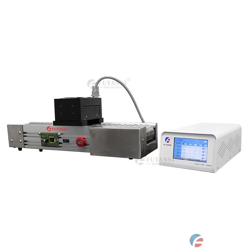 复坦希电子科技生产研发的小型UVLED流水线固化设备,采用进口LED灯珠,具有能量高、光照均匀、光源稳定等优势,可根据使用需求选择UVLED面光源照射头数量(1-4个)。UVLED流水线采用触摸屏控制方式,功率可调(10%-100%),可自由设定照射时间。设备体积小,占地面积少,安装方便,可配合流水线车间配套使用。