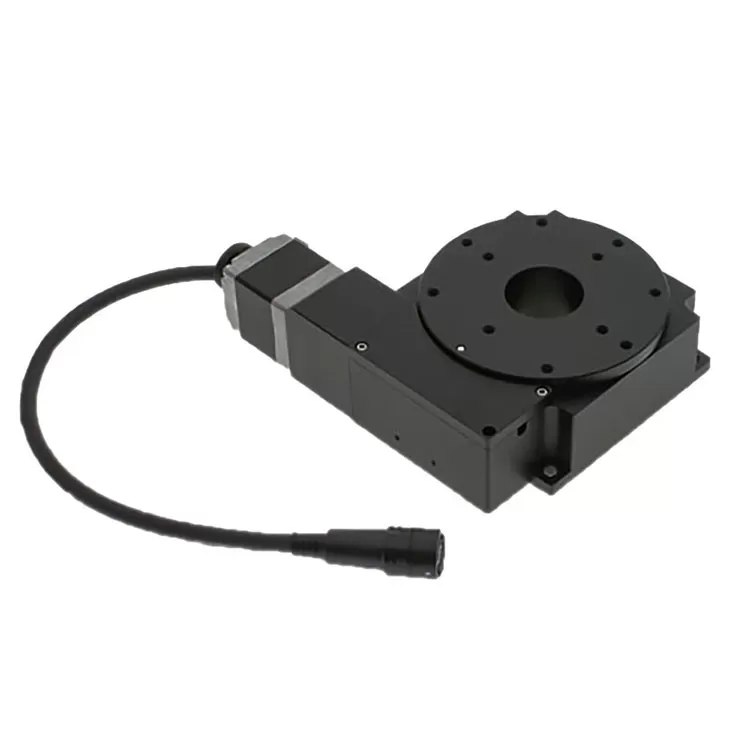 电动旋转滑台采用精密滚珠丝杆移动结构和标配步进电机,运动流畅。360°连续旋转和正弦微小角度反复旋转。RS232接口,方便连接控制器。特殊的结构设计保证了旋转滑台很低的偏心扰动,使运动更加平稳。旋转滑台外围激光刻标尺,相对台面转动,方便初始定位和读数。可增加限位功能,增加初始零位功能;可换装伺服电机,加装旋转编码器,接受产品的改制和量身定制。